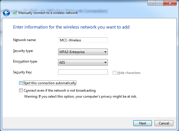 Step 5. When prompted, enter your myMCCKC UserID and Password, and press Next to Join. This will complete your connection to the wireless network.
